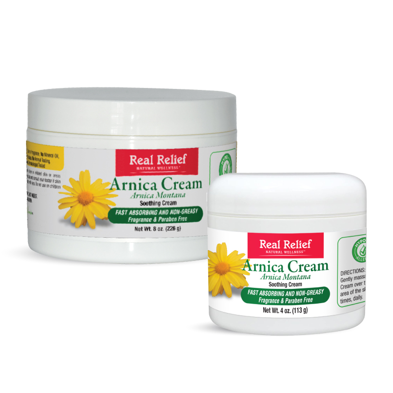 - Arnica is the common ingredient that has been found to be used as early as the 17th century. It is made from the alpine plant called the Arnica Montana and is closely related to the sunflower plant. This fast absorbing, non-greasy cream will offer you maximum benefits.